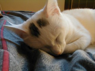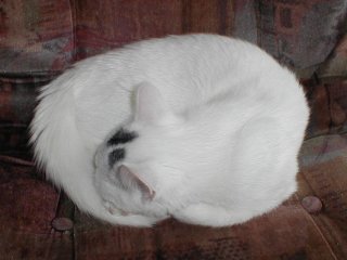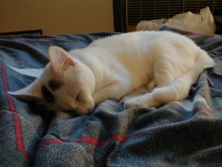 | Aren't I cute asleep? | I'll fall asleep on the bed, | in my little cubby, | or even on your favorite chair. |